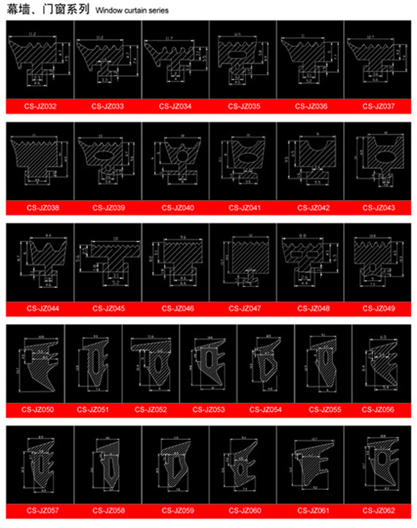 GB12002-89《塑鋼門(mén)窗用密封條》 GB320 281NAF05-2000《建筑幕墻用硫化橡膠密封條》 |