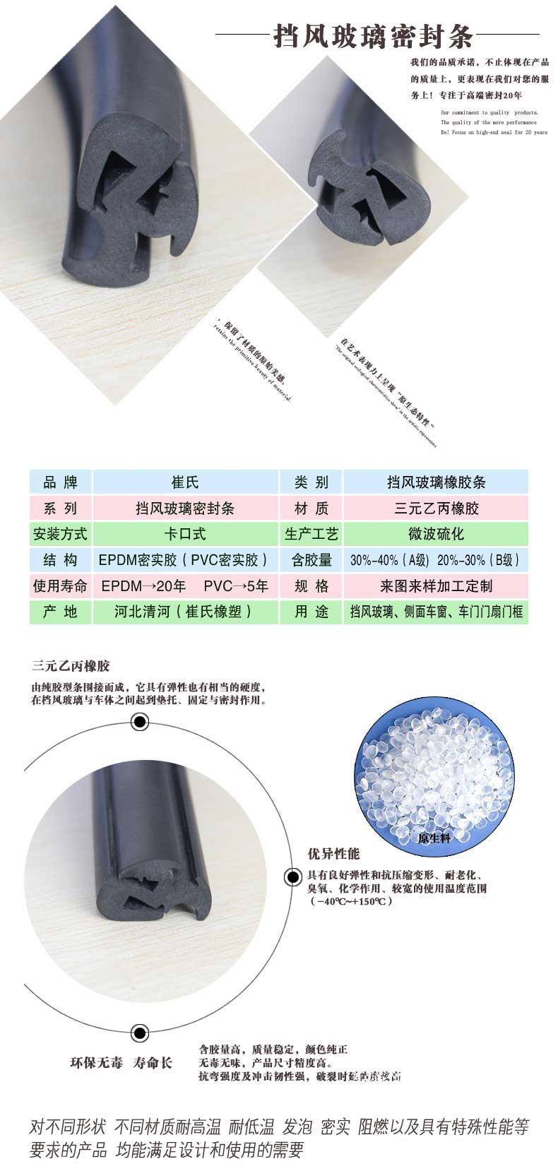 5 20年使用壽命,解決汽車密封條經(jīng)常更換的麻煩。