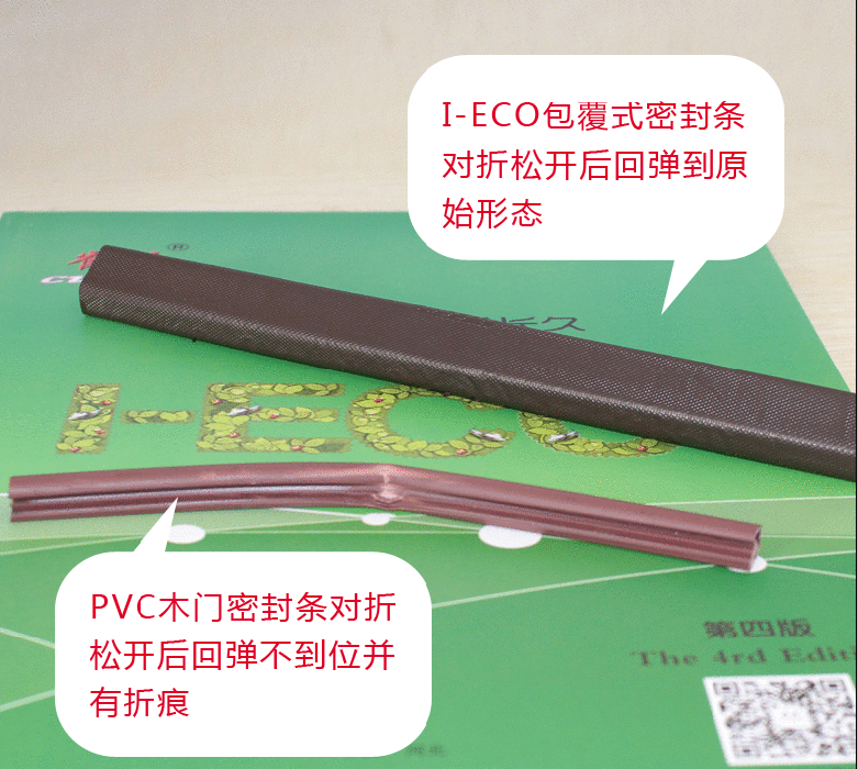 2、冷縮測試法,可以同時把PVC木門密封條與I-ECO包覆式密封條放在冰箱冷凍室,過了幾個小時后,PVC木門密封條就會變得很僵硬,容易折斷,而I-ECO包覆式密封條物理性能無變化。所以在選購木門密封條時,盡可能的選用I-ECO包覆式密封條,因為PVC密封條夏季氣溫過高,它易變軟,釋放氣體,不利于環(huán)保;而在冬季的時候,如果氣溫過低,則容易僵硬易損壞,同時密封條過硬,它就會失去緩沖作用,不利于隔音與保護門扇。